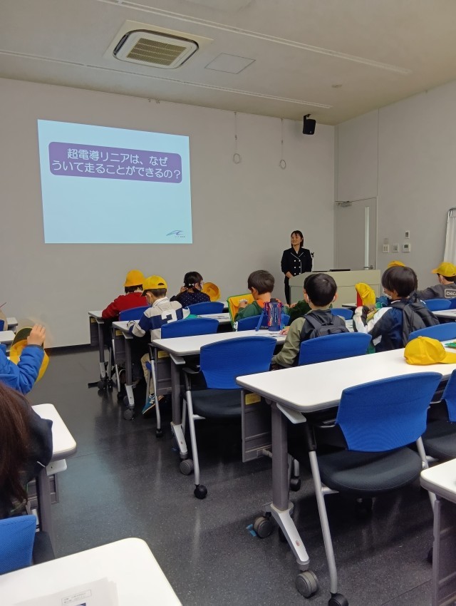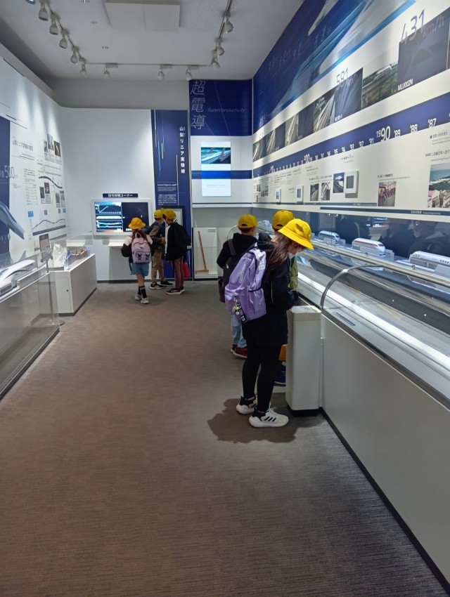 校外学習でリニア・鉄道館へ行きました。リニアが走る仕組みについて模型を見て学び、磁石の力で電車が浮いて進むことに児童は「すごい!」と驚いていました。
