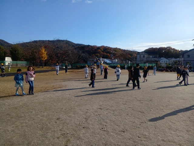 6年生が室内遊びを準備していましたが、外遊びに変更することにしました。急な変更でしたが、6年生のがんばりで楽しく遊ぶことができました。