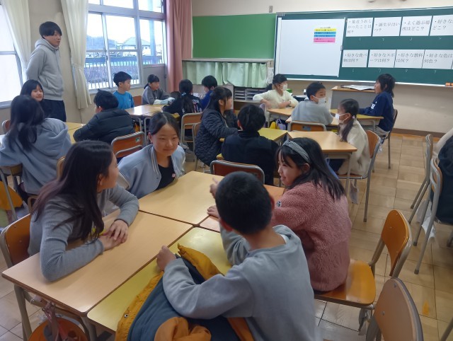 「好きなスポーツは?」「最近うれしかったことは?」などの質問についてグループみんなの考えを聞いた後、もっと詳しく知りたいことを質問します。普段聞かない話もでき、友達のことを理解することのできる大切な時間です。