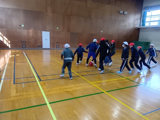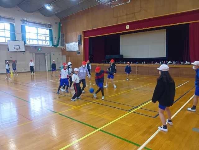 サッカーの学習をしています。今はまだ、みんながボールに集まってしまい、パスをつなぐのが難しい状態です。先生のアドバイスを意識しながら、どうすれば広い場所を使えるか、試行錯誤の練習が続いています。