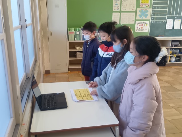 授業参観では、総合の発表をする予定です。これまでにグループに分かれて1年間の学習の成果をまとめました。今日はセリフの練習をしました。とても上手に発表していました。本番が楽しみです。