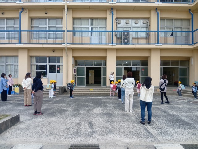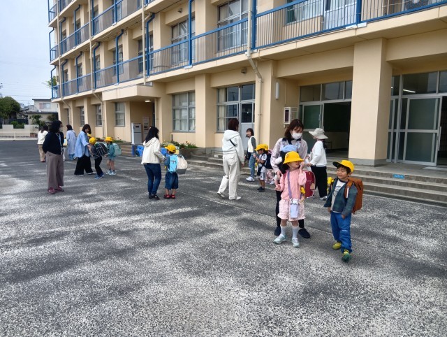 お迎え下校の間に、家へ帰る道を覚えてほしいと思います。