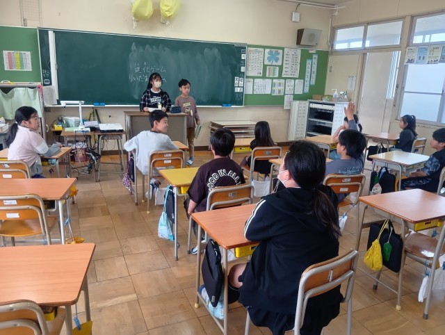 新しい縦割り班のグループで集まる「顔合わせの会」がありました。