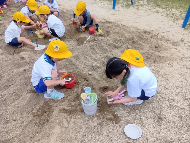 深い穴を掘ったり、力を合わせて大きな山を作ったり、型抜きで素敵な形を並べたり……。