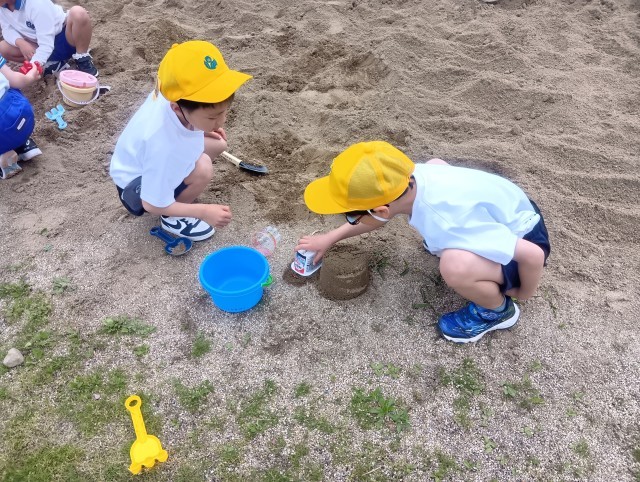 お家から持ってきた道具や、友達と貸し借りした道具を上手に使いながら、みんなで協力して活動することができました。