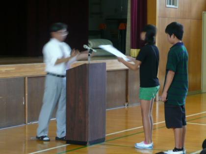 9月1日(月)2学期の始業式を行いました。始業式の前に校務主任が転入生を紹介し始業式が始まりました。内容は校長先生の話・校歌斉唱です。始業式が終わった後、夏休み報告会を行いました。内容は陸上大会表彰伝達・男鹿交流学習・わくわくトーク・赤十字トレセンです。