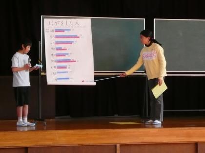 12月4日学校保健委員会を行いました。本校ではどのようなけがが多く、いつどんな時にけががおきるかの発表や、クイズ形式でけがが起こった場合どうしたらよいかを勉強しました。