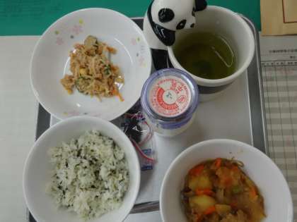 わかめごはん 牛乳 肉じゃが 切り干し大根とツナのサラダ プルーン