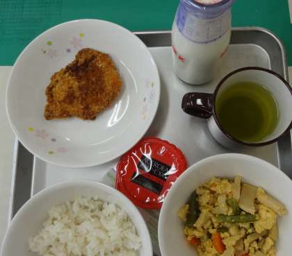 麦ごはん 牛乳 高野豆腐の卵とじ ソフトかれいフライ アセロラゼリー