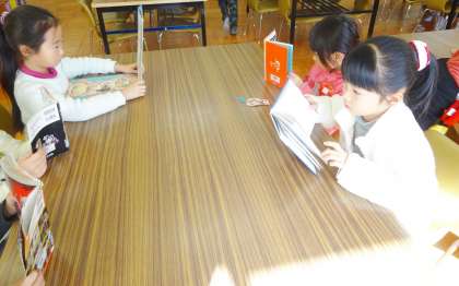 1年生は、図書室で、静かに読書をしていました。