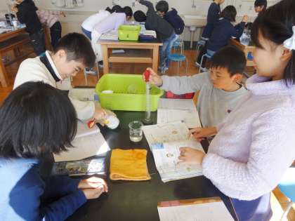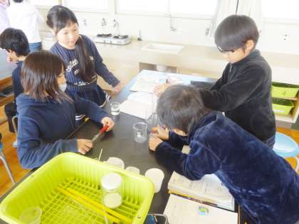 5-1は、理科で、物の溶け方の実験をしていました。