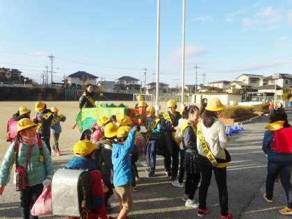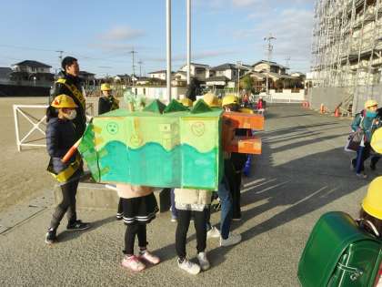 児童会が、ユニークな企画で、あいさつ運動を行ってくれています。朝、「おしざン」が登場しました。