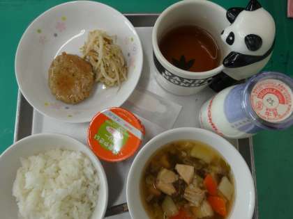 ごはん 牛乳 三平汁 和風ハンバーグのたれかけ もやしのごま和え 野菜ゼリー