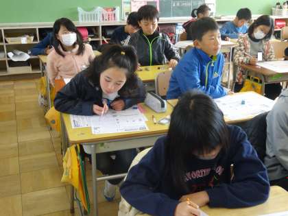 5-2は、算数で、プリントを使って、計算の練習をしていました。