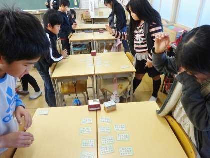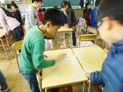 4年生は、百人一首をしていました。