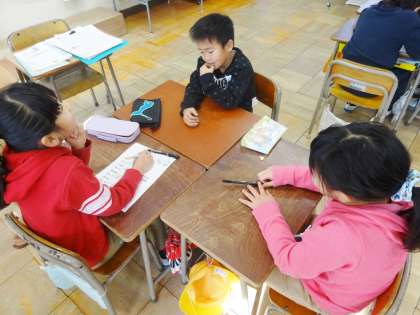 2-2は、班活動の内容を相談していました。