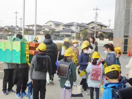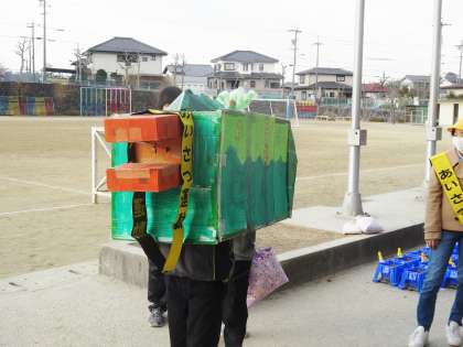 あいさつ運動で、今日も、「おしザン」が登場しました。PTAの方も参加していただけのした。