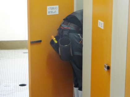 業者の方に、トイレをきれいにしていただいています。校舎内のすべてのトイレをきれいにしていただく予定です。