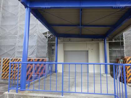 給食配膳室の一部の色が塗られました。校章の色と同色の色です。