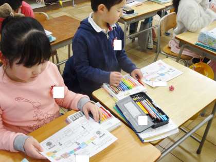 1年生は、「マラソンがんばりカード」をつくっていました。