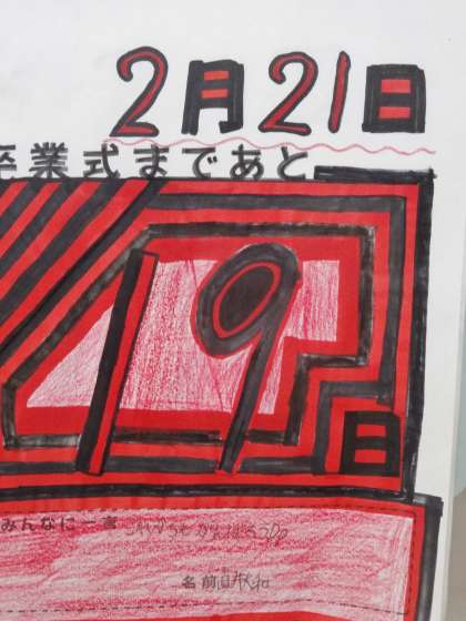 6年生の廊下に、卒業までの日数が掲示してありました。