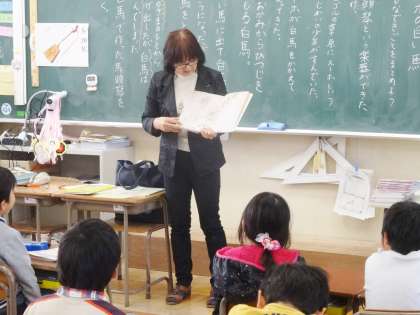 2−2は、国語で、先生の朗読を聞いていました。
