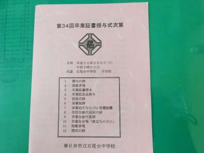 今日は、石尾台中学校の卒業式がありました。厳粛で、とてもよい式でした。