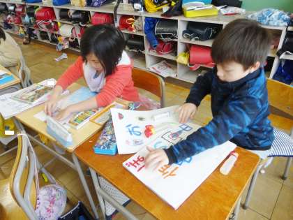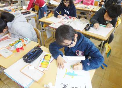 4年生は、図工で、作品の整理をしていました。