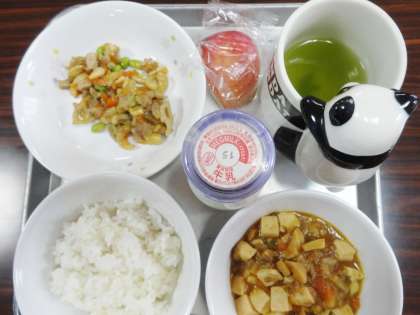麦ごはん 牛乳 マーボ豆腐 鶏肉のカシューナッツ炒め りんご