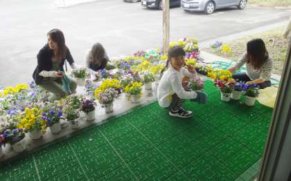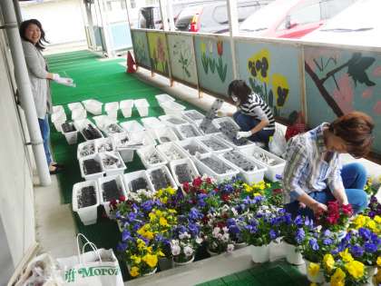 明日の入学式のために、PTAの方に花の準備をしていただけました。