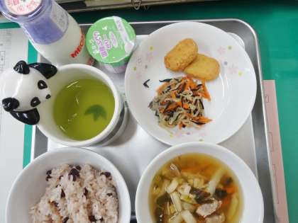 せきはん 牛乳 さわにわん チキンナゲット ぶどうゼリー