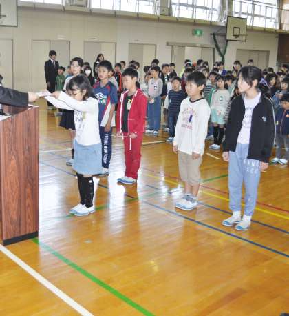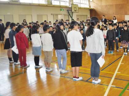 まず最初に、平成30年度前期学級委員(4〜6年生)の認証式が行われました。みんなから激励の拍手を受けました。