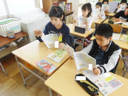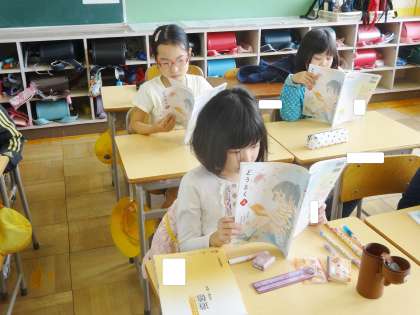 4年生は、道徳の教科書を、黙読していました。