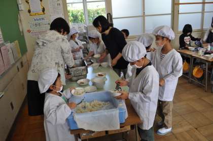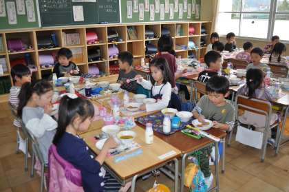 一人一人に配膳できたら、「いただきます」をして、食べました。。
