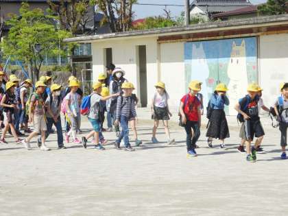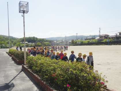 1〜3年は石尾公園に、4〜6年は緑化植物園に出発しました。
