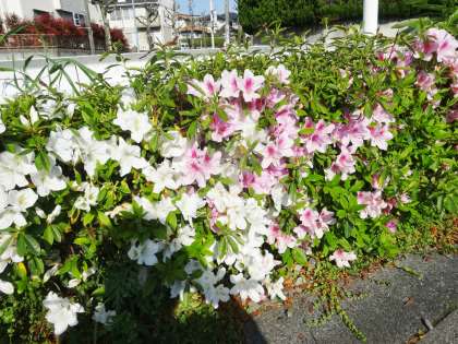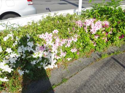 「押沢台小学校西」の交差点に、きれいにツツジが咲いていました。
