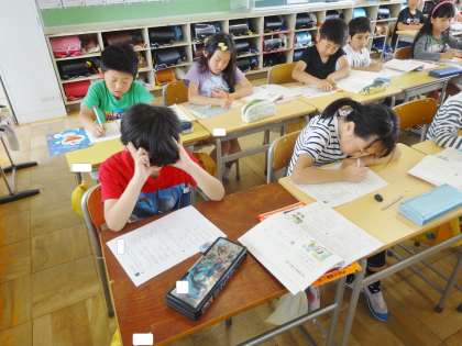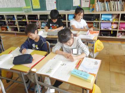4年生は、国語で、漢字の練習をしていました。