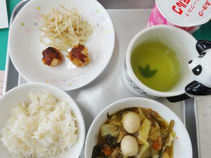発芽玄米ごはん 牛乳 八宝菜 揚げしゅうまい もやしのナムル