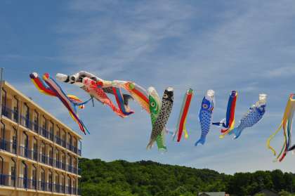 本日予定されていた鯉のぼりの片付けは、雨のため明日に延期します。
