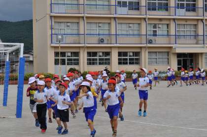 3年生と4年生が運動会の練習をしていました。整列や入退場をきびきびと行っていました。