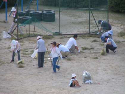 運動会を翌週にひかえ、9月27日(日)に除草作業が行われました。この作業は町内会の方々、本校の保護者・児童の有志のみなさんによって行われました。暑い中で汗をかきながらの作業となりましたが、お陰様で見違えるように綺麗になりました。参加していただいた方々、本当にありがとうございました。