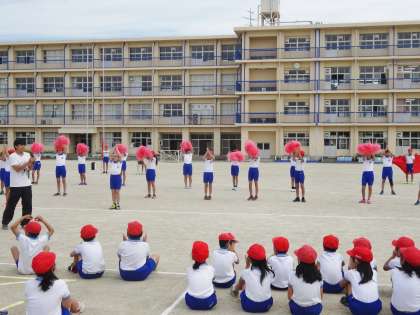 応援団が中心となって、応援の練習をしました。