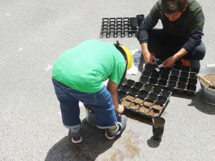 4組は、植物の種を植えていました。