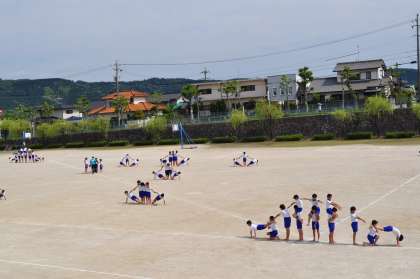 5年生と6年生は、組み立て体操の練習をしていました。