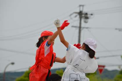 騎馬戦と大玉送りです。