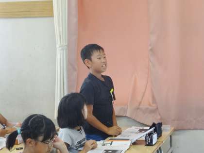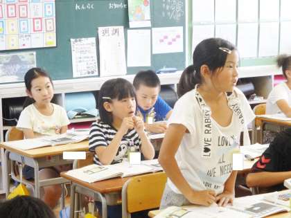 4年生は、国語で、記事の見出しについて学習していました。