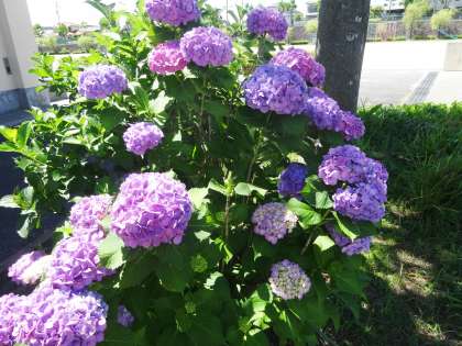 東門の左側に、あじさいがきれいに咲いています。