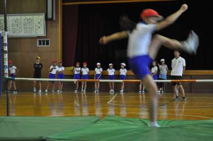 今日は、雨のため、体育館で、高跳びの練習をしました。