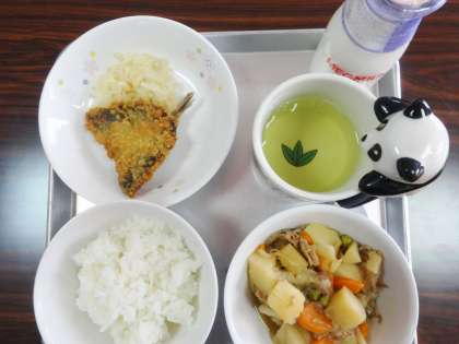 ごはん 牛乳  肉じゃが 青しそ入りあじフライ  きざみたくあん