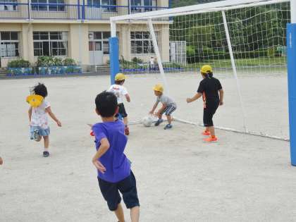 1,2年生は、サッカーをしていました。